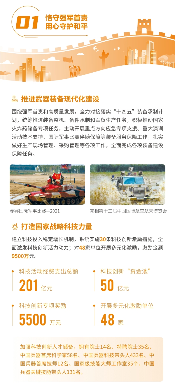 近日,兵器工業(yè)集團(tuán)正式發(fā)布第十三份年度社會(huì)責(zé)任報(bào)告——《中國(guó)兵器工業(yè)集團(tuán)有限公司2021年社會(huì)責(zé)任報(bào)告》,以“用心守護(hù)和平、用力爭(zhēng)創(chuàng)一流、用情溫暖社會(huì)”為主題,從恪守強(qiáng)軍首責(zé)、服務(wù)經(jīng)濟(jì)建設(shè)、共創(chuàng)美好生活三個(gè)維度,向社會(huì)全面披露2021年度履責(zé)實(shí)踐和履責(zé)業(yè)績(jī)?!秷?bào)告》連續(xù)第三年獲得中國(guó)企業(yè)社會(huì)責(zé)任報(bào)告評(píng)級(jí)專(zhuān)家委員會(huì)“五星佳”評(píng)級(jí),兵器工業(yè)集團(tuán)成為軍工行業(yè)唯一連續(xù)11年獲得五星及五星佳最高評(píng)級(jí)的企業(yè)。 一圖解碼兵器工業(yè)的“責(zé)任力量” |