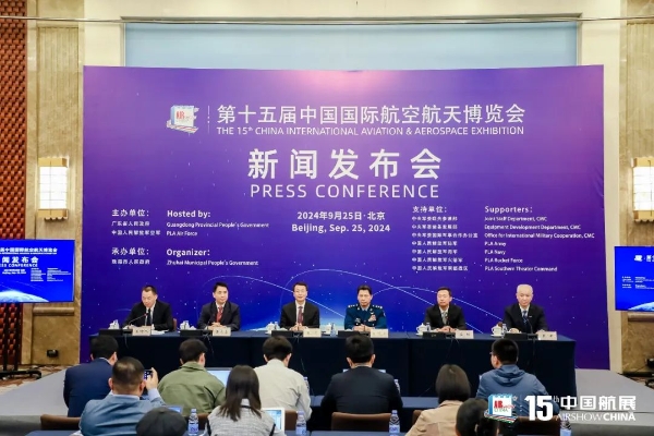 9月25日,第十五屆中國(guó)國(guó)際航空航天博覽會(huì)(以下簡(jiǎn)稱“中國(guó)航展”)新聞發(fā)布會(huì)在北京舉行。廣東省委常委、常務(wù)副省長(zhǎng)張虎介紹本屆航展有關(guān)情況,中國(guó)空軍副司令員俞慶江介紹空軍參展亮點(diǎn)。中國(guó)航展珠海執(zhí)委會(huì)主任、珠海市委副書記、市長(zhǎng)黃志豪,國(guó)家國(guó)防科技工業(yè)局(國(guó)家航天局)新聞宣傳辦公室副主任李陽(yáng),中國(guó)民航局運(yùn)行監(jiān)控中心副主任戴軍分別答記者問(wèn)。廣東省政府新聞辦副主任鄧?guó)欀鞒职l(fā)布會(huì)。